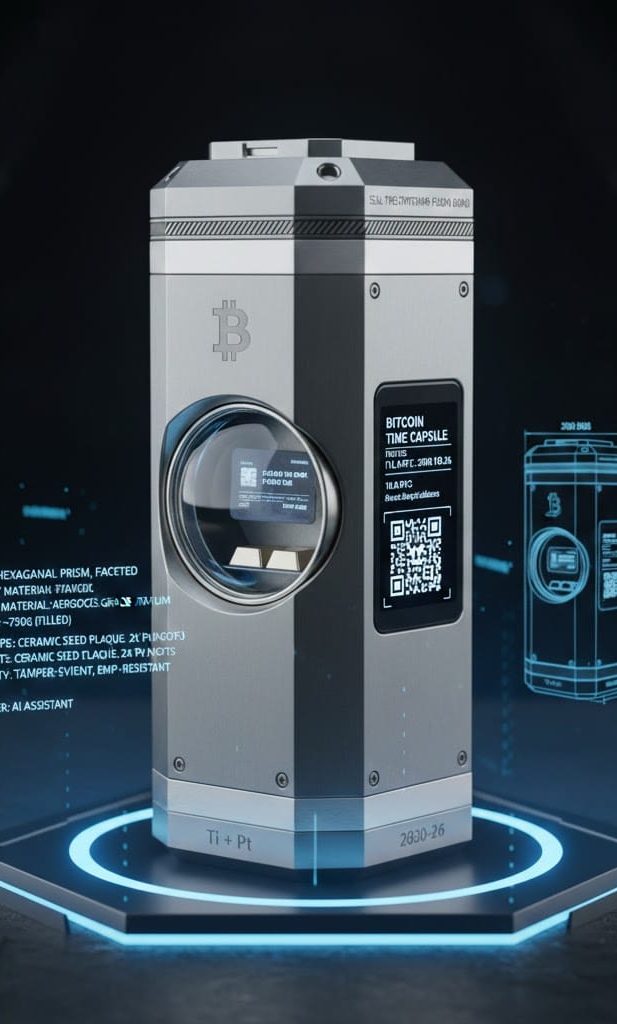 Sämtliche auf dieser Webseite dargestellten Technologien, insbesondere das In-Situ-Verfahren zur Laserkodierung sowie das mechanische Design der Bitcoin Time Capsule, sind urheberrechtlich sowie durch Patente und Geschmacksmuster beim Deutschen Patent- und Markenamt (DPMA) geschützt. Jede unautorisierte Nachahmung oder gewerbliche Nutzung wird rechtlich verfolgt.